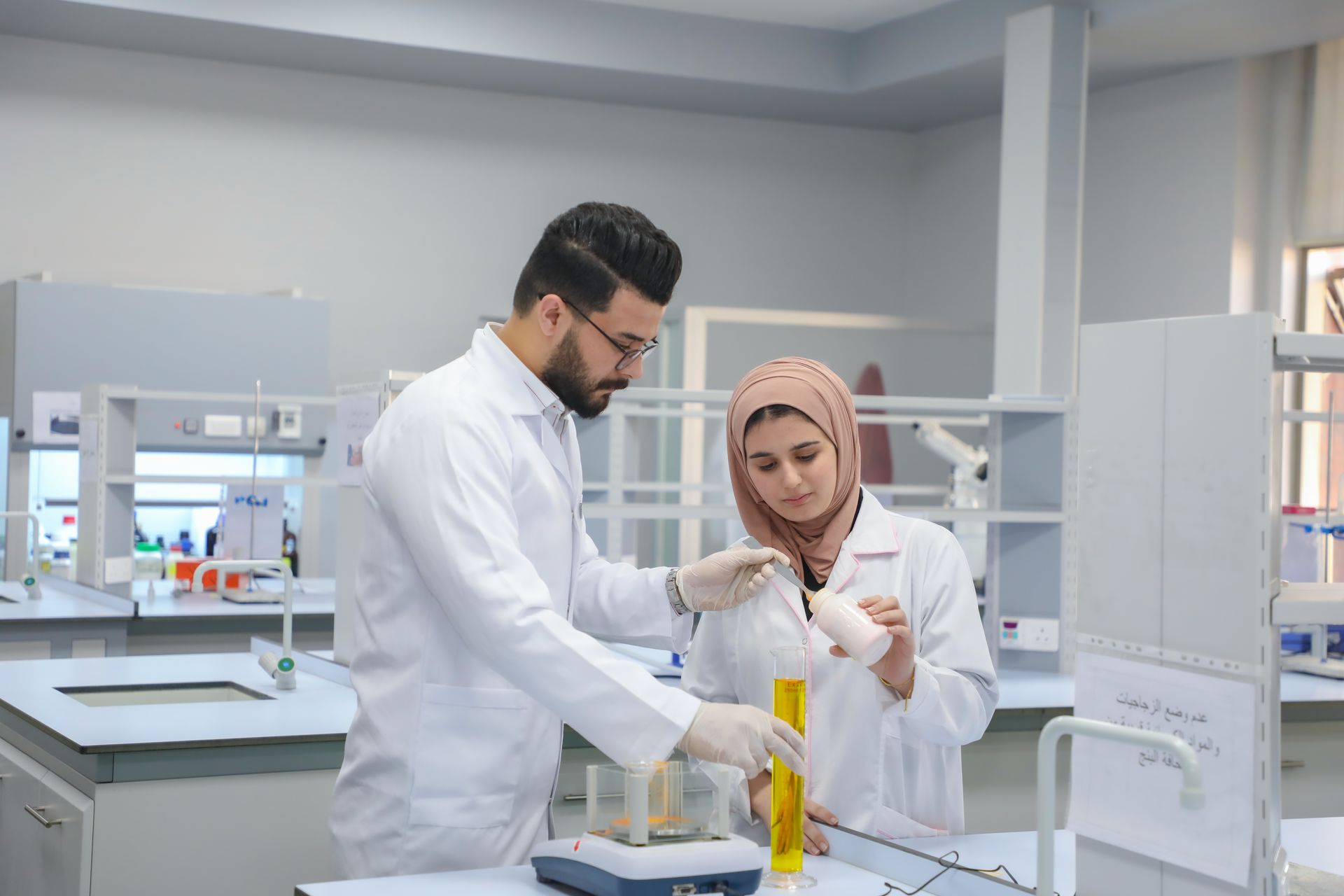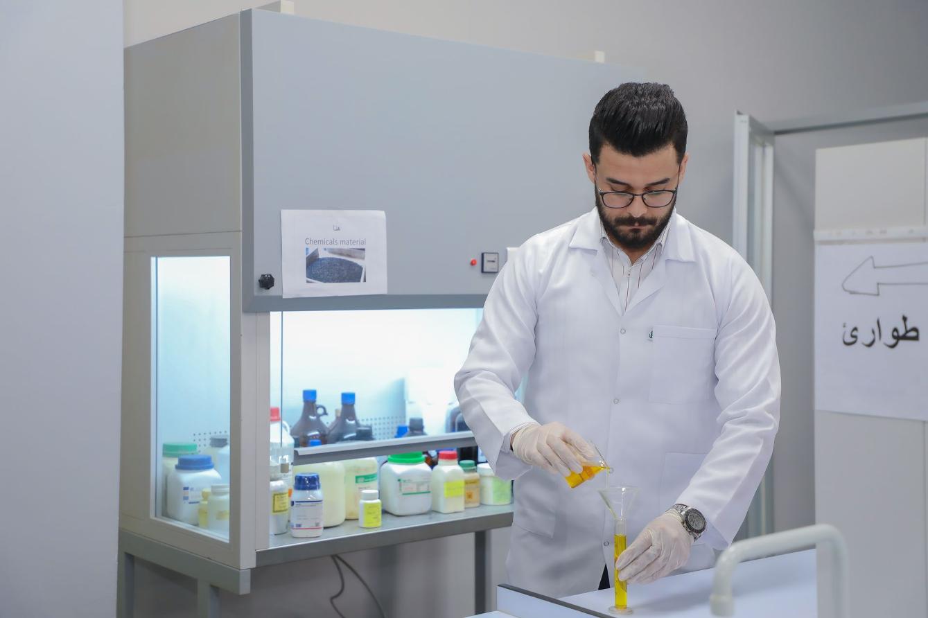 إيمانا من كلية الصیدلة بأهمیة ثقافة البحث العلمي، فإنها ُتشجع إجراء بحوث علمیة أکادیمیة وطلابیة بدعم من إدارة الجامعة؛ من خلال توفیر البنى التحتیة والمختبرات البحثیة؛ لرفع مستوى البحث العلمي، بالإضافة إلى تعزیز العلاقات مع الجامعات الحکومیة والعربية والدولیة بغیة تعمیق ودعم التعاون البحثي والمعرفي.